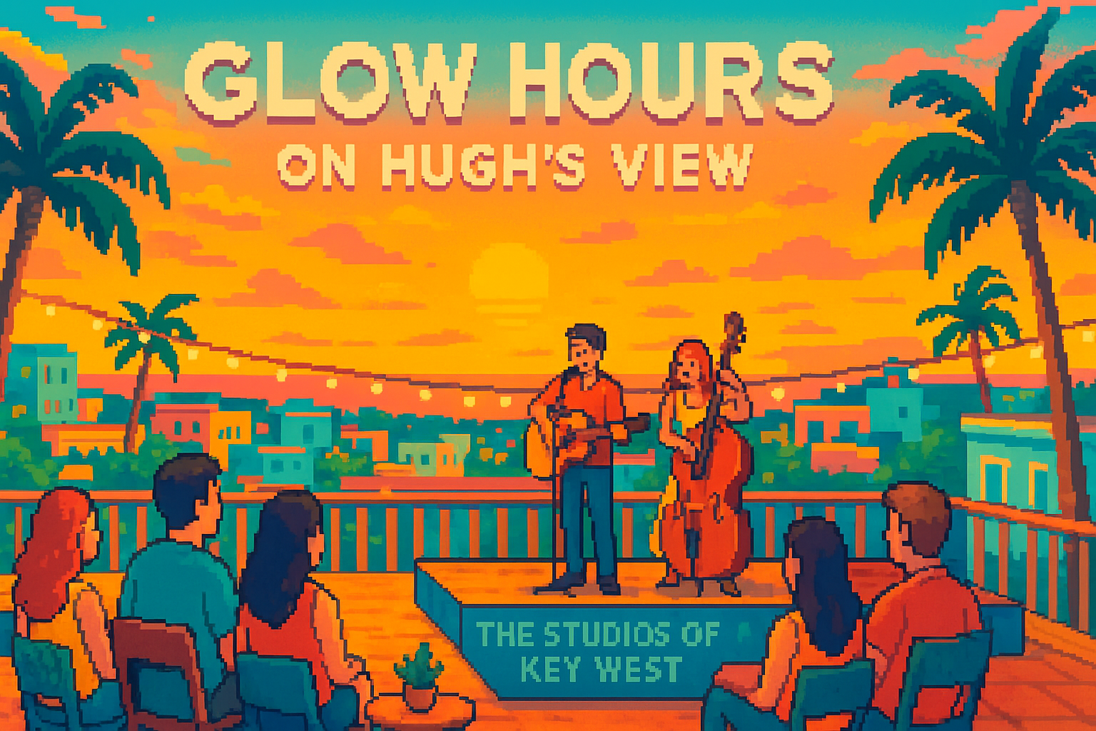 Glow Hours on Hugh’s View at The Studios of Key West promises an enchanting evening with live music at its heart. Overlooking the vibrant cityscape just a block from Duval Street, this event features talented local artists who create an unforgettable ambiance, blending artistry and community spirit in a stunning rooftop setting.